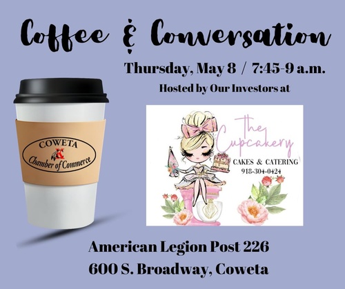 Networking is like coffee - energizing, warm and best enjoyed with great company. Join us this month at American Legion Post 226 as we gather for Coffee & Conversation, hosted by our chamber investors with The Cupcakery Cakes & Catering. The Cupcakery owner Chrissy Charlex will bring some tasty muffins and bagels to start your morning off right!